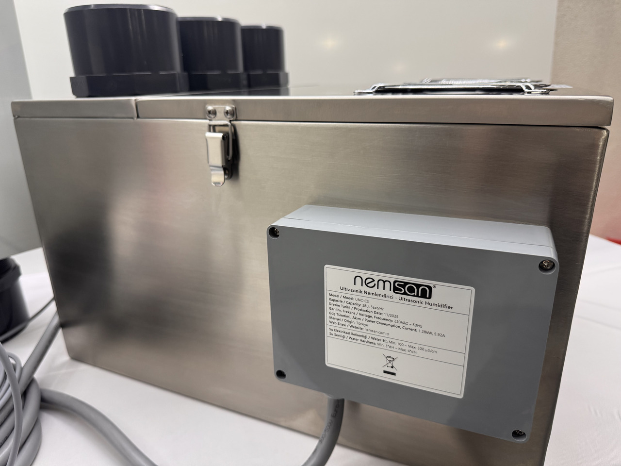 AHU (Air Handling Unit) series ultrasonic humidifiers are devices that work in harmony with central ventilation systems to provide highly efficient humidification in industrial environments. These devices transform water into microscopic droplets using ultrasonic waves, optimizing the moisture balance in the environment through airflow. With high energy efficiency, AHU series humidifiers help reduce business energy costs by providing maximum humidification with minimal energy.