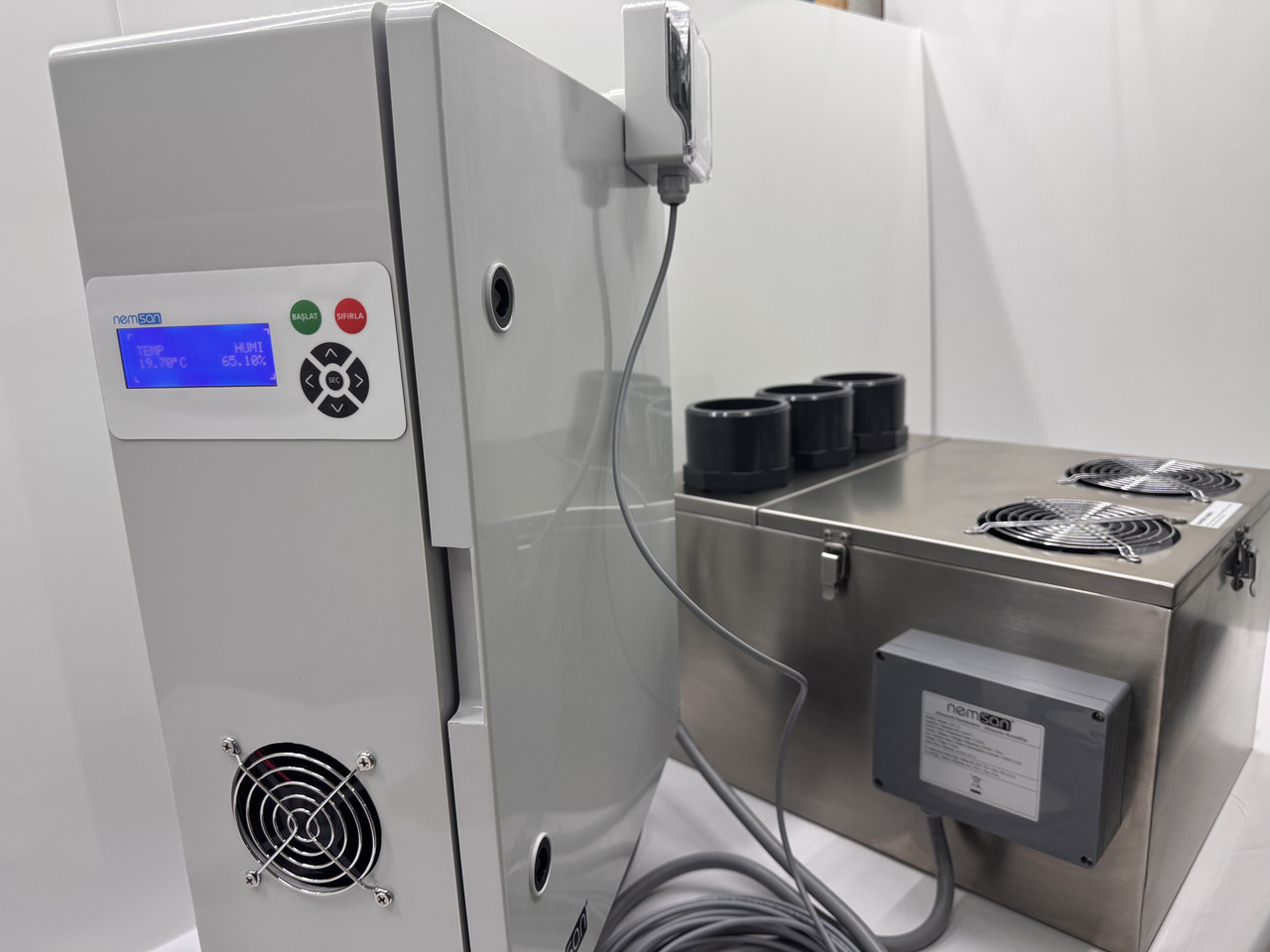 With its built-in industrial sensor, it performs sensitive, ambient humidity and temperature measurements , works or stops accordingly.